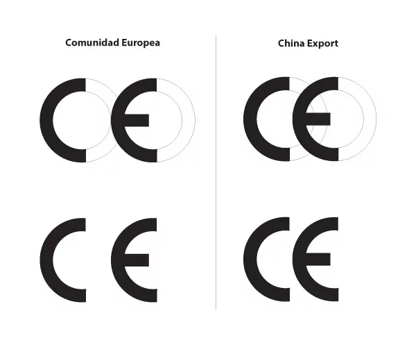 Pese a que parecen casi idénticos, este símbolo significa «China Export» (producto fabricado en China) y en este caso el fabricante no está ni tan siquiera comprometiéndose a cumplir las normativas europeas.