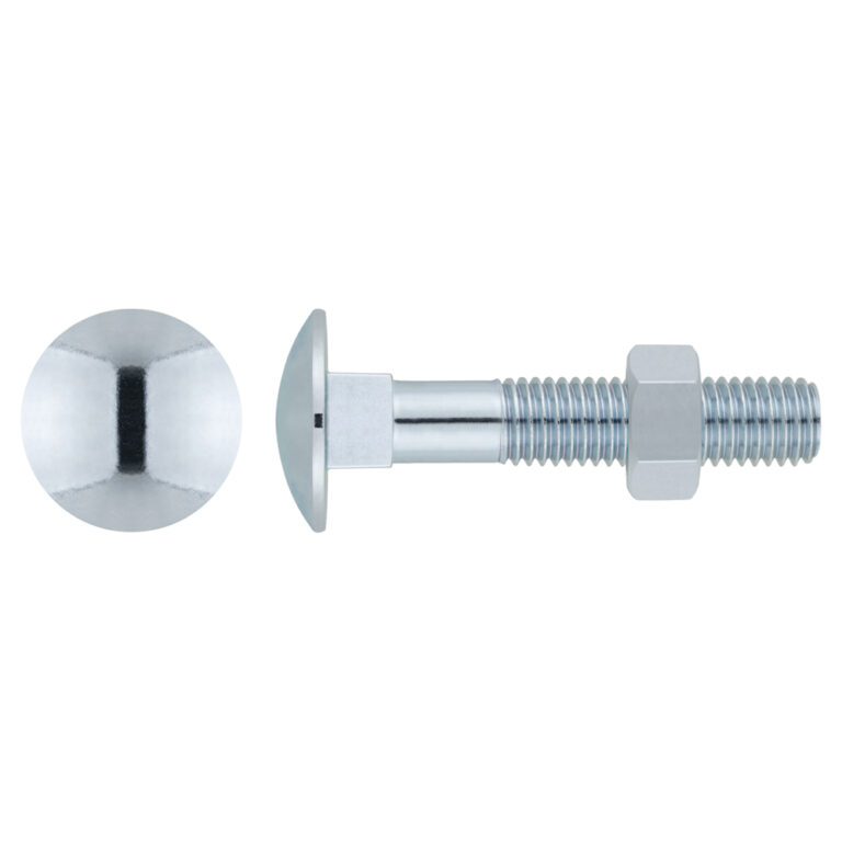 Tornillo con cabeza redonda con cuello cuadrado y tuerca hexagonal