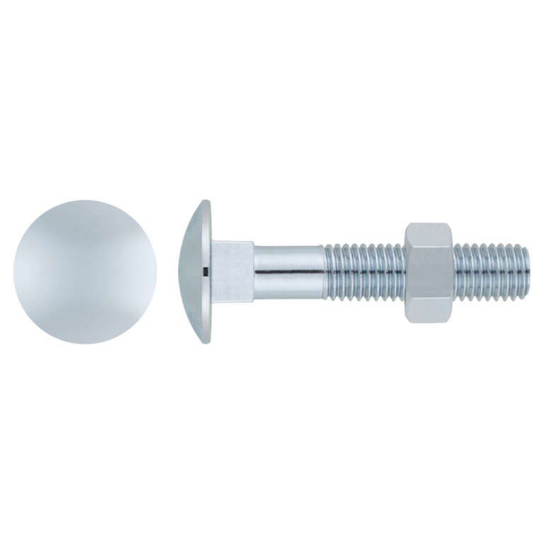 Tornillo con cabeza redonda con cuello cuadrado y tuerca hexagonal