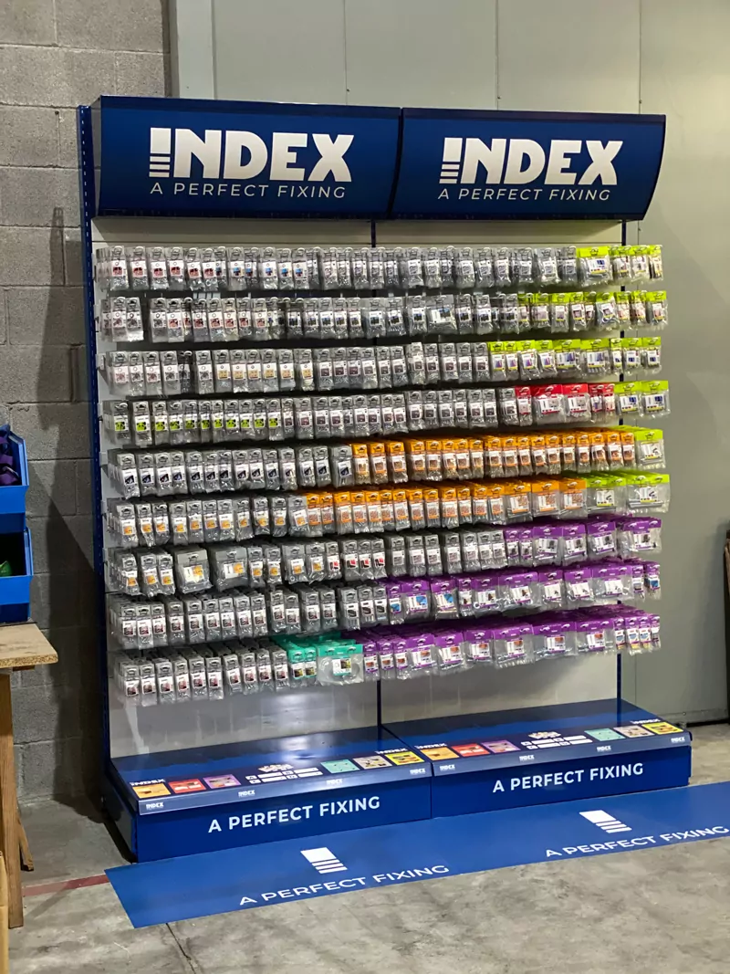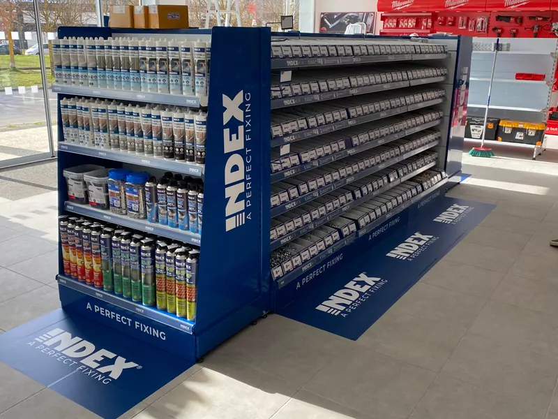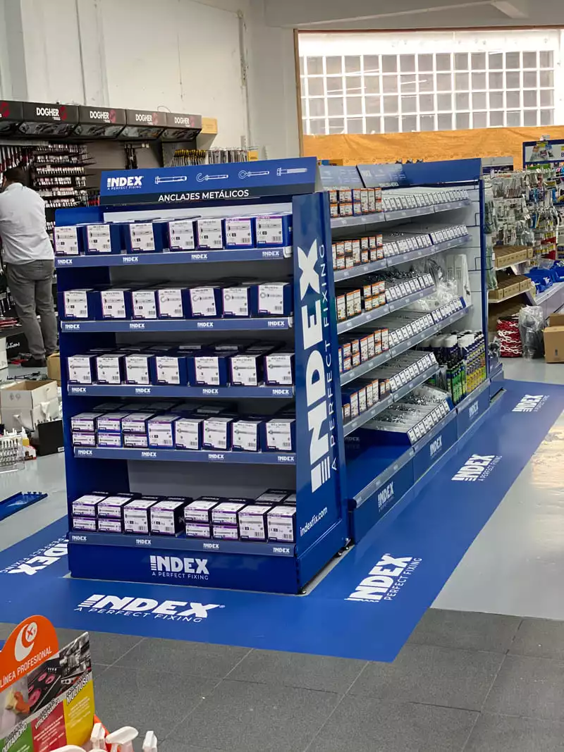 El equipo especializado de montadores INDEX ®. se ocupa del montaje inicial íntegramente. Instalación del mobiliario, ubicación del producto e instalación de los elementos de merchandising.