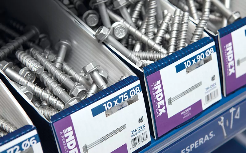 Disponible para anclajes, tornillos, abrazaderas y bridas. Una buena solución para implantaciones con espacio de autoventa.