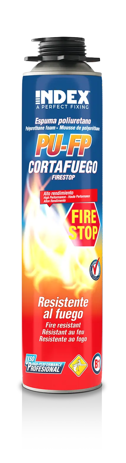 Espuma de poliuretano de altas prestaciones resistente al fuego B1. Indicada para el sellado, montaje, relleno, aislamiento y fijación en lugares donde se desea o se exige resistencia al fuego. Asegura excelente adhesión en todos los materiales de la construcción, excepto en PTFE, silicona y polietileno.