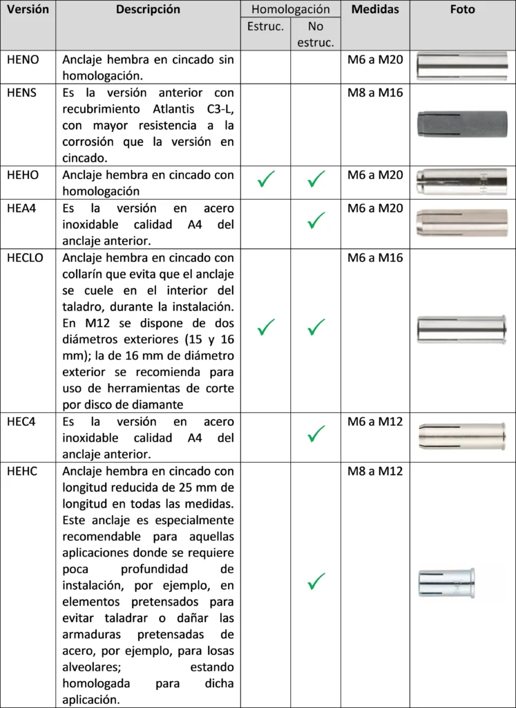 Ofrecemos varias versiones de esta tipología de anclaje: