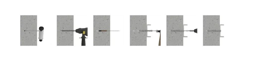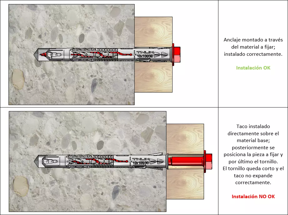 En las siguientes imágenes se muestra el anclaje instalado correctamente, con montaje a través del material a fijar: