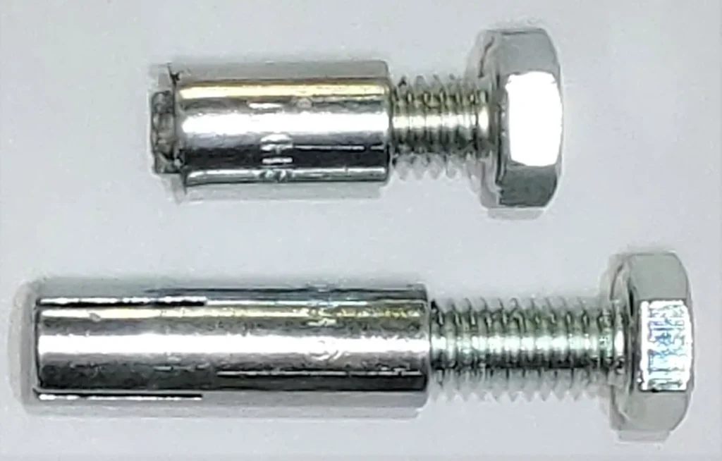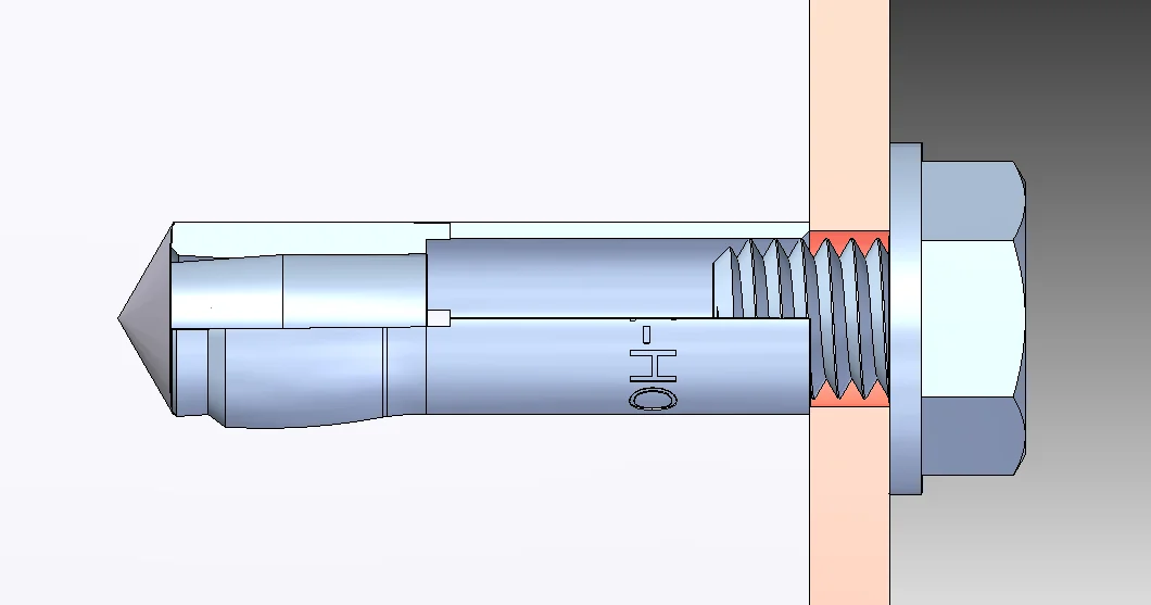 - Una longitud excesiva podría dar lugar a que la punta del perno entrase en contacto con el cono de expansión del anclaje antes de que la cabeza del perno se apoye en el material a fijar. En ese caso el perno tiene impedido su avance, por lo que aplicación de un par sucesivo podría ocasionar la rotura de la camisa del anclaje por el efecto de tracción que los hilos de rosca del perno ejercen sobre la camisa.