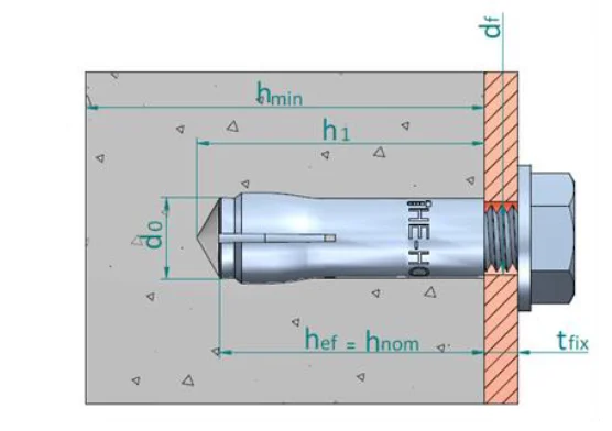 | hnom | Profundidad del anclaje en el hormigón | [mm] | 25 | 30 | 40 | 50 | 65 | 80 |