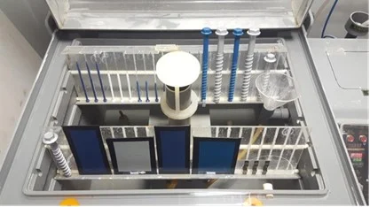 Existen otros métodos de ensayo en los que el entorno corrosivo se compone de ciclos de una hora en sal húmeda seguidos de una segunda hora en condiciones secas. Dicho protocolo refleja más adecuadamente las condiciones de trabajo reales de un anclaje instalado en una obra civil. Estas condiciones permiten que la pátina de cinc se forme debidamente sobre la superficie del revestimiento galvanizado en caliente / sherardizado y, por tanto, proporcionan una mejor predicción de su resistencia a la corrosión.