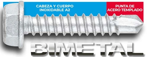 En caso de ser necesario el uso de tornillos inoxidables para uniones de chapa de acero al carbono se recomienda el empleo de tornillos autotaladrantes bimetal (familias ABE bimetal y AUTO bimetal), compuestos por una punta de acero al carbono templada y un cuerpo de acero inoxidable, sodados entre sí. Se debe prestar atención a que la punta y el inicio de rosca queden protuberantes por la parte posterior de la fijación.