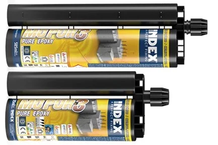 Es cuando ambos componentes se mezclan de una manera adecuada, y con las proporciones estipuladas por el fabricante, que entran en reacción y son empleados para la fijación de varillas roscadas o armaduras en diferentes materiales base.
