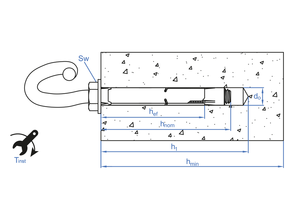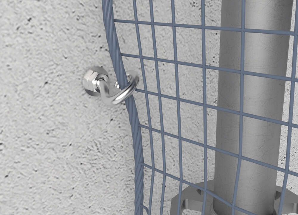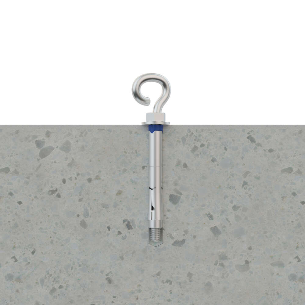 Anclaje tipo camisa con gancho espiral, que permite la fijación de mallas, cables o cuerdas. Diseñado para fijar elementos de cargas medias en materiales macizos. Funciona mediante expansión mecánica por par controlado. Incorpora antigiros que evitan que rote durante el apriete. Fabricado en acero con recubrimiento zincado.
