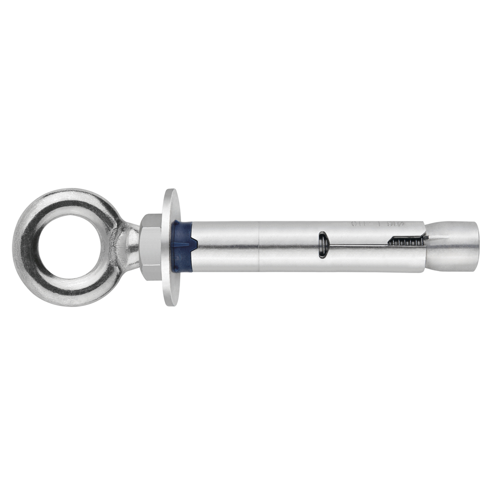 Ancaje tipo camisa con argolla forjada, que permite la instalación de cables, vallados o entutorados. Diseñado para fijar elementos de cargas medias en materiales macizos. Anclaje de expansión mecánica por par controlado, con incorpora antigiros que evitan que rote durante el apriete. Fabricado en acero inoxidable A2.