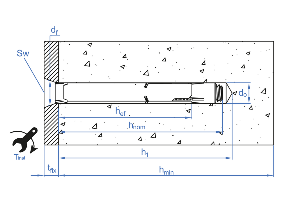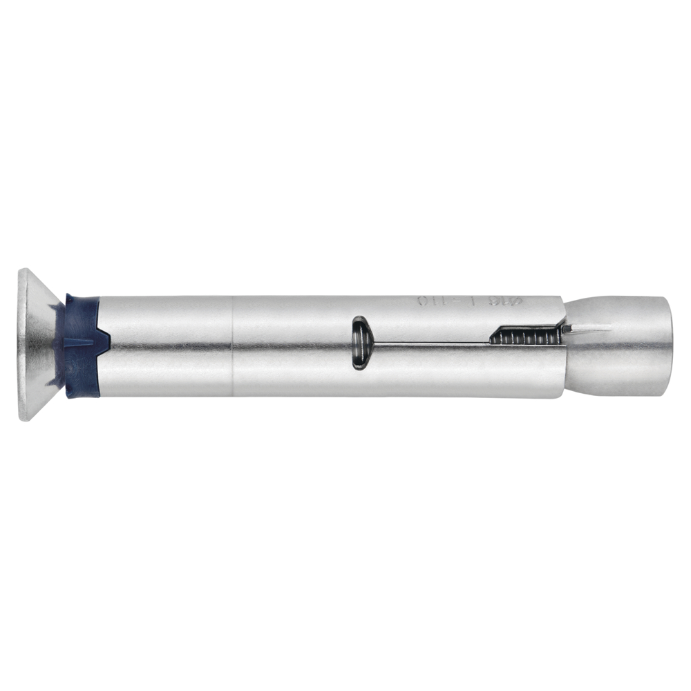 Anclaje tipo camisa con cabeza plana. Para cargas medias en materiales macizos. Funciona mediante expansión mecánica por par controlado. Cuenta con antigiros que impiden que el anclaje rote con el apriete. Homologado ETE Opt.7. Fabricado en acero inoxidable A2.