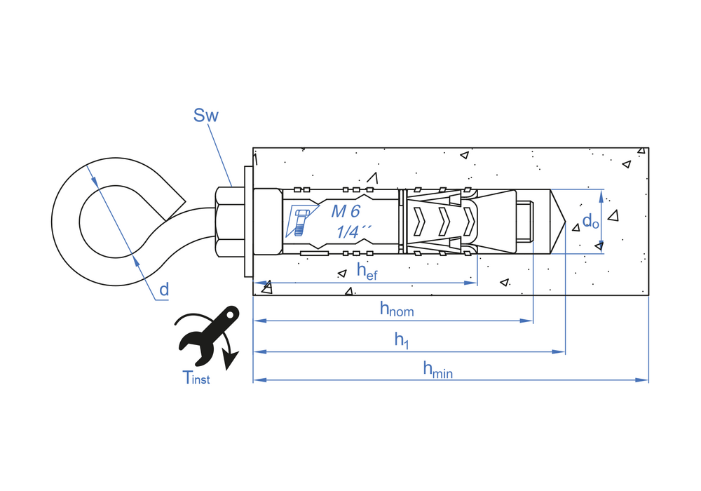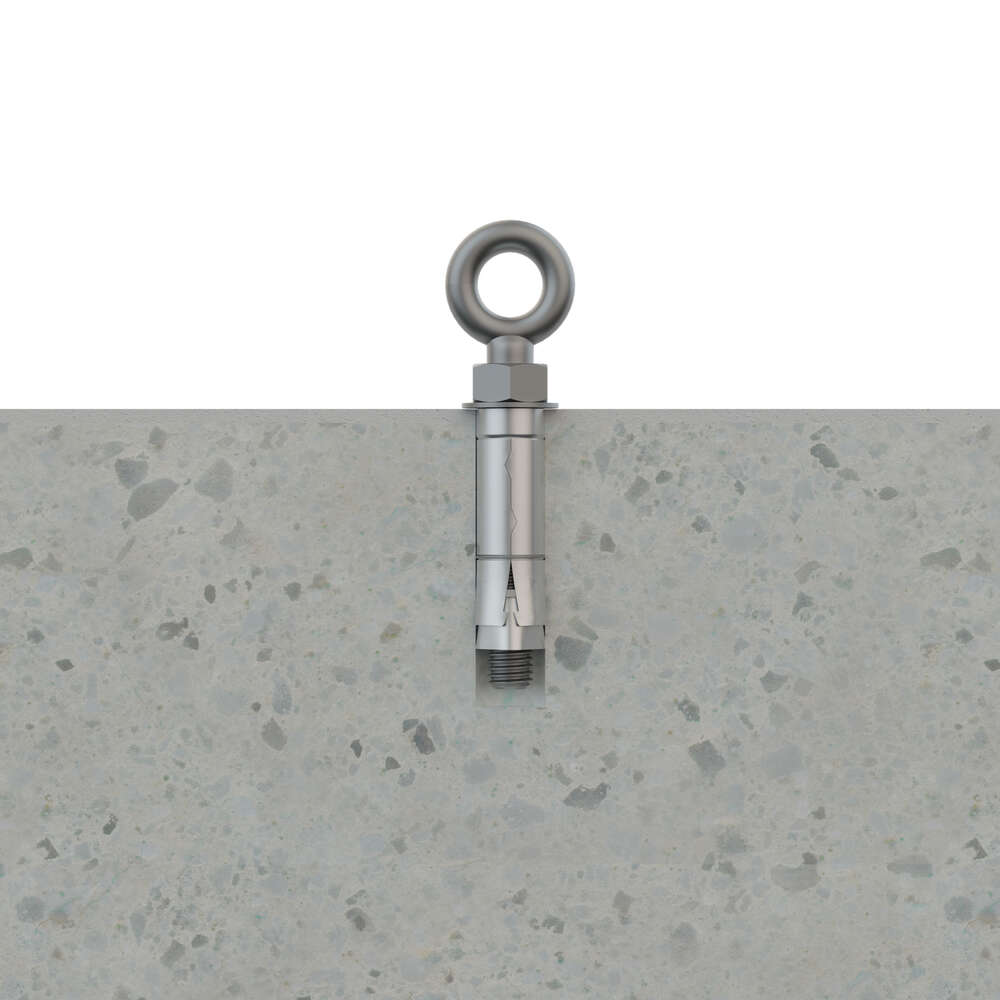 Anclaje con argolla, adecuado para fijar elementos de cargas medias y altas en materiales macizos y huecos. Alta capacidad de expansión, algo que lo hace especialmente útil para materiales de baja resistencia. Instalación por par controlado. Fabricado en zamak 5 y acero con recubrimiento zincado.