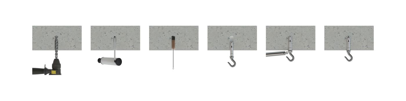 Anclaje de expansión con gancho. Para fijar elementos de cargas altas en hormigón no fisurado y otros materiales macizos. Instalación por par controlado. El gancho permite la instalación posterior de entutorados o cables. Hecho de acero con recubrimiento zincado.