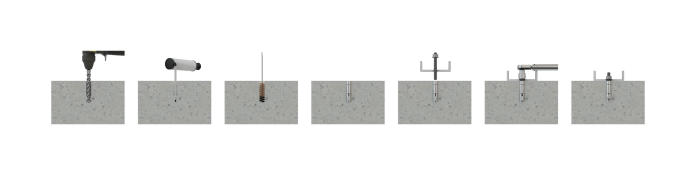 Anclaje de expansión con cápsula, adecuado para fijar elementos de cargas altas en hormigón no fisurado. Instalación por par controlado. Fabricado en acero inoxidable A4, un material muy resistente a la corrosión.