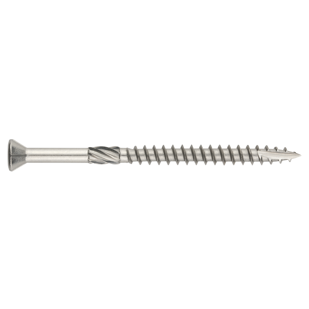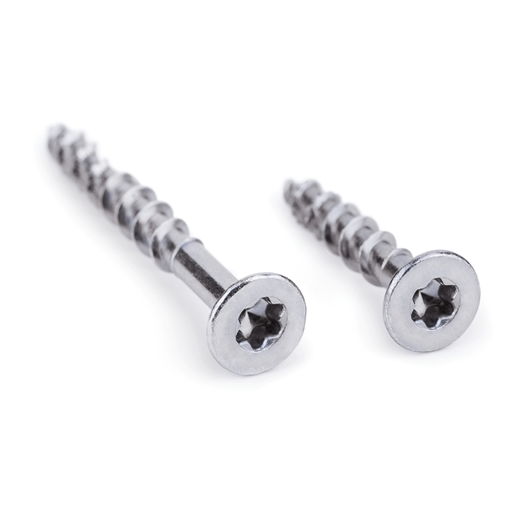 Tirafondo inoxidable de altas prestaciones, con cabeza avellanada y huella TX. Su rosca de paso optimizado y la punta de tipo S, ultraafilada y serrada, permiten una inserción sencilla y ágil en la madera. Se puede emplear en el montaje de estructuras de madera o la fijación de herrajes. Está fabricado en acero inoxidable A2, que permite su uso en exterior.