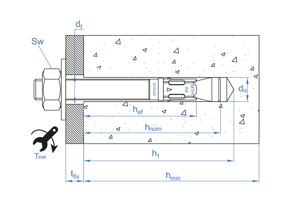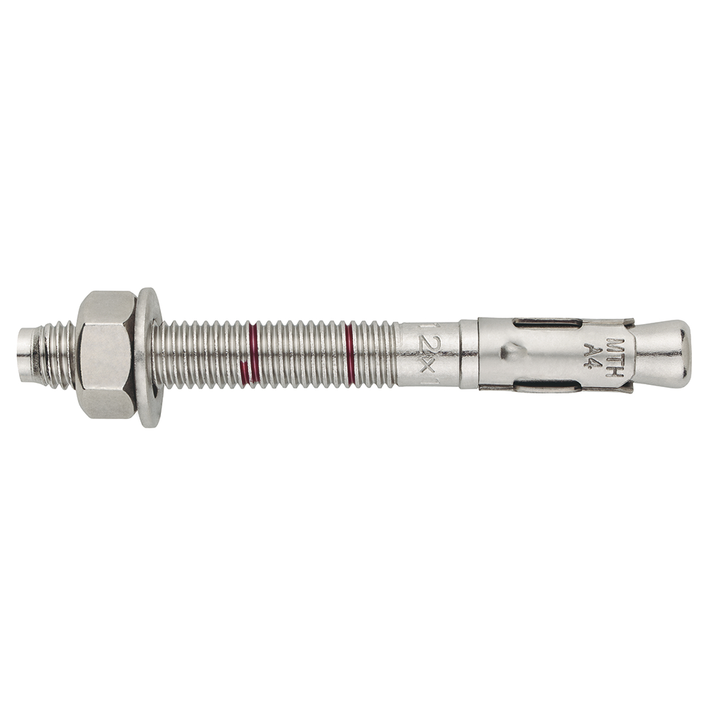 Anclaje de rosca macho, para cargas altas en hormigón no fisurado. Funciona mediante expansión por par controlado. Homologado ETE Opt. 7 para aplicaciones estructurales. Eje y clip fabricados en acero inoxidable A4, lo que otorga al anclaje una alta protección frente a la corrosión.