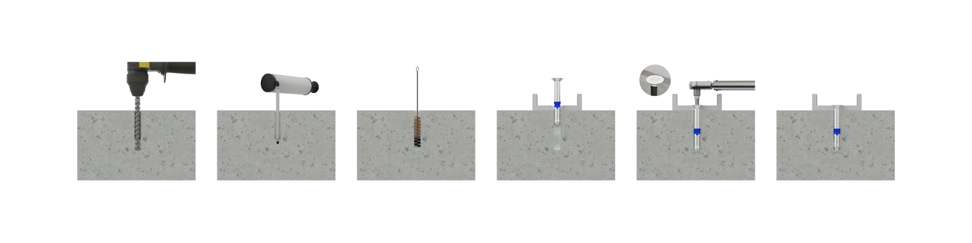 Anclaje para grandes cargas en hormigón con cabeza avellanada. Homologado ETE Opt.1.
