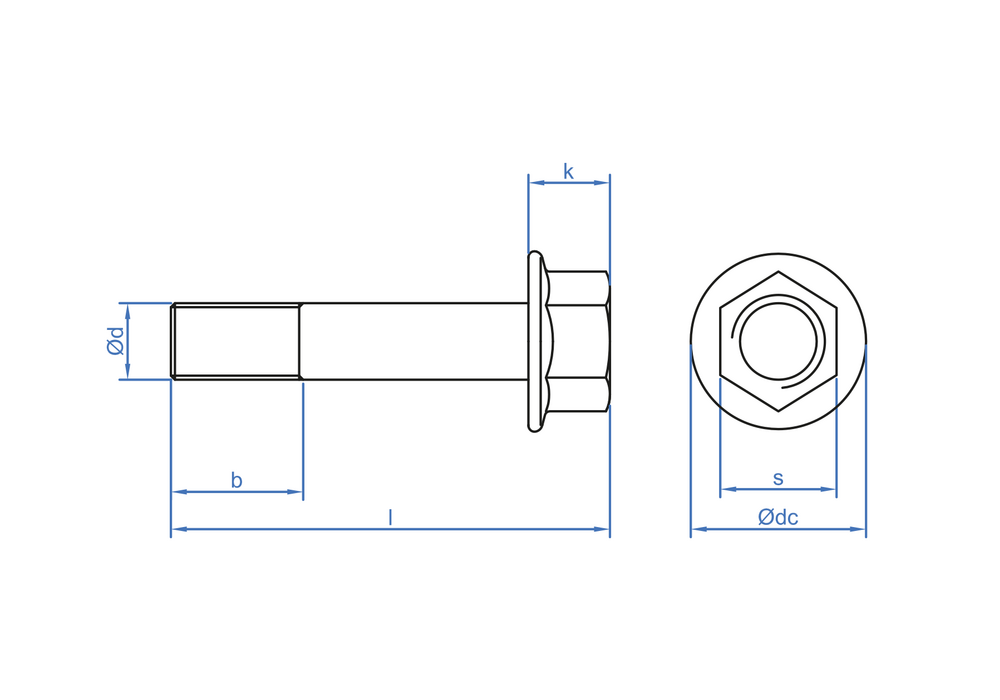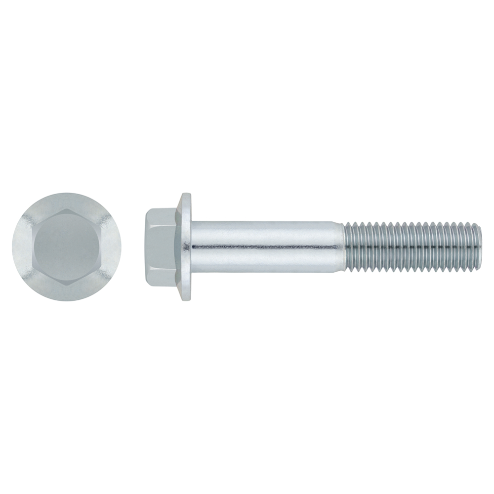 Tornillo DIN-6921, con cabeza hexagonal, arandela y rosca métrica parcial. La arandela, estampada y grafilada, refuerza la fijación al ampliar el área de apoyo y repartir la distribución de la carga. Se puede emplear para el ensamblaje de chapas o el montaje de maquinaria. Está fabricado en acero con recubrimiento zincado de calidad 8.8.
