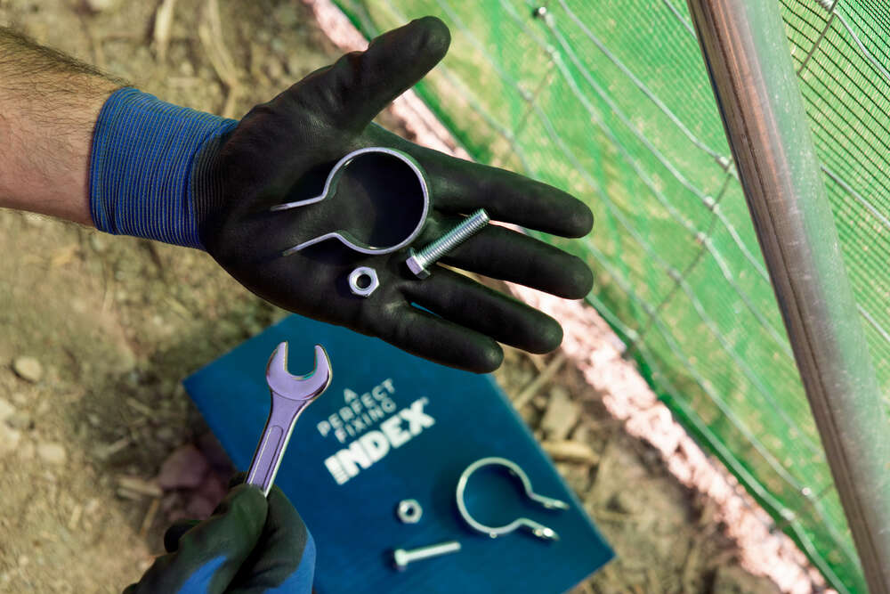 • [VARIEDAD DE ACCESORIOS] INDEX A PERFECT FIXING dispone de una gran variedad de accesorios para cercado, incluyendo bridas y tapones metálicos.