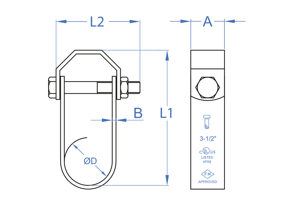 Abrazadera tipo clevis, diseñada para la soportación de tuberías en instalaciones contra incendios. Permite la instalación de tubos pesados en suspensión. Cuenta con las certificaciones FM y UL, que avalan sus prestaciones para el montaje de sistemas de rociadores contra incendios. Está fabricada en acero con recubrimiento zincado.