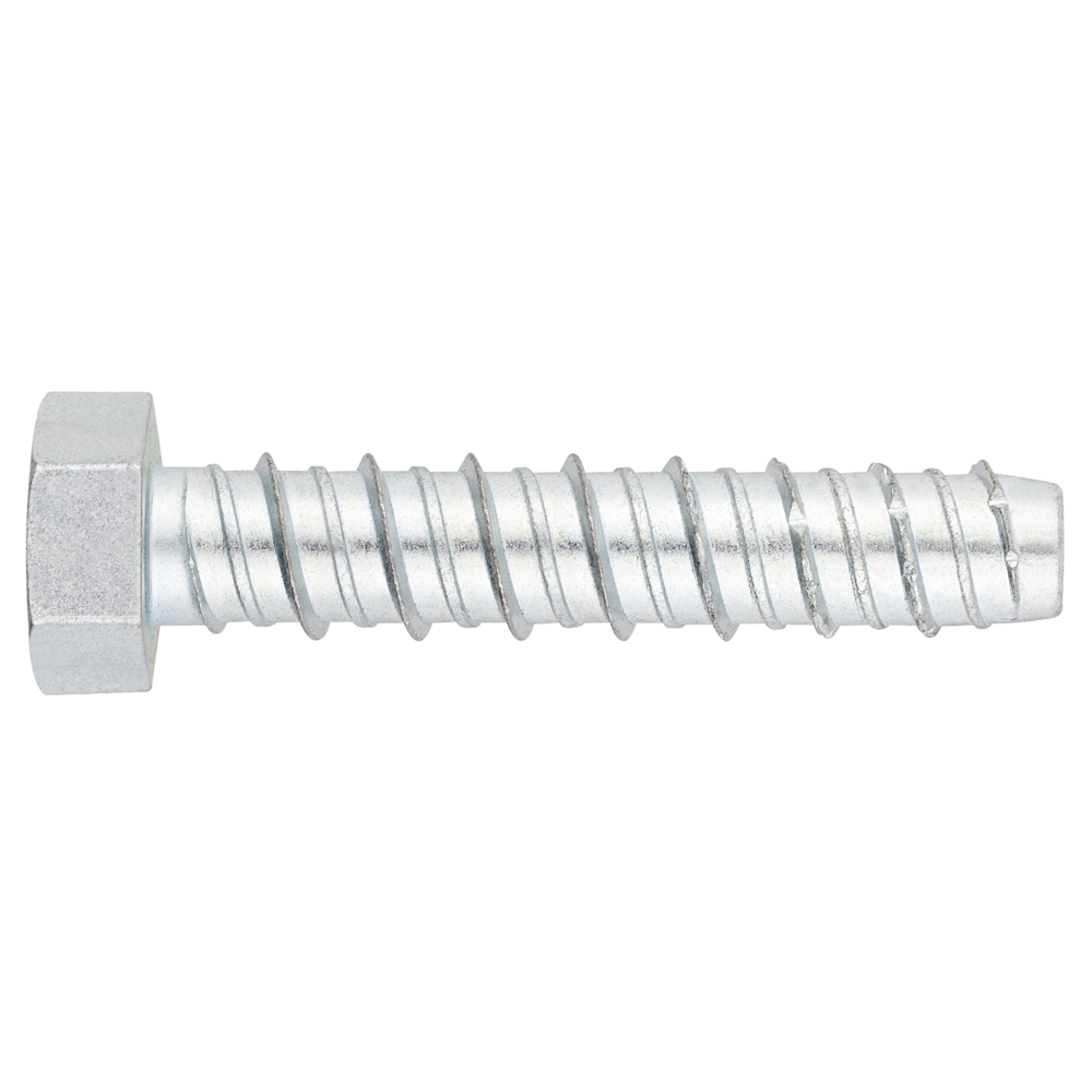 Tornillo de fijación directa, con cabeza hexagonal sin arandela. Adecuado para fijar elementos de cargas altas en hormigón fisurado y no fisurado. Desmontable y reutilizable.Homologado ETE Opt.1. Fabricado en acero con recubrimiento zincado.