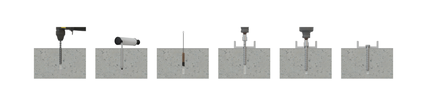 • [CARGAS ALTAS] Se trata de un anclaje perfecto para realizar fijaciones estructurales en hormigón como gradas, barandillas, acristalamientos, ventanas, escaparates, maquinaria y todo tipo de fijaciones de carga alta en la que se requiera una fijación indicada para hormigón.