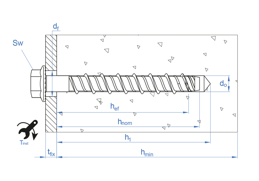 TFE05040 Ø5 x 40 5 8 100 2.400 8423533845245 tfix - Espesor máx. a fijar 5 SW - Llave de instalación 8 df - Ø Elemento a fijar 8 Tins - Par de apriete (Nm) 8 hnom - Profundidad mín. del anclaje 35 h1 - Profundidad mín. de taladro 45 d0 - Ø Broca 5 hmin - Espesor mín. material base 80 L - Longitud 40 TFE05050 Ø5 x 50 5 8 100 1.600 8423533845252 tfix - Espesor máx. a fijar 5 SW - Llave de instalación 8 df - Ø Elemento a fijar 8 Tins - Par de apriete (Nm) 8 hnom - Profundidad mín. del anclaje 45 h1 - Profundidad mín. de taladro 55 d0 - Ø Broca 5 hmin - Espesor mín. material base 80 L - Longitud 50 TFE05060 Ø5 x 60 15 8 100 1.600 8423533845269 tfix - Espesor máx. a fijar 15 SW - Llave de instalación 8 df - Ø Elemento a fijar 8 Tins - Par de apriete (Nm) 8 hnom - Profundidad mín. del anclaje 45 h1 - Profundidad mín. de taladro 55 d0 - Ø Broca 5 hmin - Espesor mín. material base 80 L - Longitud 60 TFE05080 Ø5 x 80 35 8 50 800 8423533845276 tfix - Espesor máx. a fijar 35 SW - Llave de instalación 8 df - Ø Elemento a fijar 8 Tins - Par de apriete (Nm) 8 hnom - Profundidad mín. del anclaje 45 h1 - Profundidad mín. de taladro 55 d0 - Ø Broca 5 hmin - Espesor mín. material base 80 L - Longitud 80 TFE05100 Ø5 x 100 55 8 50 800 8423533845283 tfix - Espesor máx. a fijar 55 SW - Llave de instalación 8 df - Ø Elemento a fijar 8 Tins - Par de apriete (Nm) 8 hnom - Profundidad mín. del anclaje 45 h1 - Profundidad mín. de taladro 55 d0 - Ø Broca 5 hmin - Espesor mín. material base 80 L - Longitud 100 TFE06035 Ø6 x 35 -- 10 100 1.600 8423533917942 tfix - Espesor máx. a fijar -- SW - Llave de instalación 10 df - Ø Elemento a fijar 9 Tins - Par de apriete (Nm) 10 hnom - Profundidad mín. del anclaje 35 h1 - Profundidad mín. de taladro 45 d0 - Ø Broca 6 hmin - Espesor mín. material base 100 L - Longitud 35 TFE06040 Ø6 x 40 5 10 100 1.600 8423533845290 tfix - Espesor máx. a fijar 5 SW - Llave de instalación 10 df - Ø Elemento a fijar 9 Tins - Par de apriete (Nm) 10 hnom - Profundidad mín. del anclaje 35 h1 - Profundidad mín. de taladro 45 d0 - Ø Broca 6 hmin - Espesor mín. material base 100 L - Longitud 40 TFE06045 Ø6 x 45 10 10 100 1.200 8423533917959 tfix - Espesor máx. a fijar 10 SW - Llave de instalación 10 df - Ø Elemento a fijar 9 Tins - Par de apriete (Nm) 10 hnom - Profundidad mín. del anclaje 35 h1 - Profundidad mín. de taladro 45 d0 - Ø Broca 6 hmin - Espesor mín. material base 100 L - Longitud 45 TFE06050 Ø6 x 50 15 10 100 1.200 8423533845306 tfix - Espesor máx. a fijar 15 SW - Llave de instalación 10 df - Ø Elemento a fijar 9 Tins - Par de apriete (Nm) 10 hnom - Profundidad mín. del anclaje 35 h1 - Profundidad mín. de taladro 45 d0 - Ø Broca 6 hmin - Espesor mín. material base 100 L - Longitud 50 TFE06060 Ø6 x 60 5 10 100 1.200 8423533845313 tfix - Espesor máx. a fijar 5 SW - Llave de instalación 10 df - Ø Elemento a fijar 9 Tins - Par de apriete (Nm) 10 hnom - Profundidad mín. del anclaje 55 h1 - Profundidad mín. de taladro 65 d0 - Ø Broca 6 hmin - Espesor mín. material base 100 L - Longitud 60 TFE06070 Ø6 x 70 15 10 50 600 8423533845320 tfix - Espesor máx. a fijar 15 SW - Llave de instalación 10 df - Ø Elemento a fijar 9 Tins - Par de apriete (Nm) 10 hnom - Profundidad mín. del anclaje 55 h1 - Profundidad mín. de taladro 65 d0 - Ø Broca 6 hmin - Espesor mín. material base 100 L - Longitud 70 TFE06080 Ø6 x 80 25 10 50 800 8423533845337 tfix - Espesor máx. a fijar 25 SW - Llave de instalación 10 df - Ø Elemento a fijar 9 Tins - Par de apriete (Nm) 10 hnom - Profundidad mín. del anclaje 55 h1 - Profundidad mín. de taladro 65 d0 - Ø Broca 6 hmin - Espesor mín. material base 100 L - Longitud 80 TFE06100 Ø6 x 100 45 10 25 400 8423533845344 tfix - Espesor máx. a fijar 45 SW - Llave de instalación 10 df - Ø Elemento a fijar 9 Tins - Par de apriete (Nm) 10 hnom - Profundidad mín. del anclaje 55 h1 - Profundidad mín. de taladro 65 d0 - Ø Broca 6 hmin - Espesor mín. material base 100 L - Longitud 100 TFE06120 Ø6 x 120 65 10 25 400 8423533845351 tfix - Espesor máx. a fijar 65 SW - Llave de instalación 10 df - Ø Elemento a fijar 9 Tins - Par de apriete (Nm) 10 hnom - Profundidad mín. del anclaje 55 h1 - Profundidad mín. de taladro 65 d0 - Ø Broca 6 hmin - Espesor mín. material base 100 L - Longitud 120 TFE08055 Ø8 x 55 5 13 50 600 8423533845368 tfix - Espesor máx. a fijar 5 SW - Llave de instalación 13 df - Ø Elemento a fijar 12 Tins - Par de apriete (Nm) 20 hnom - Profundidad mín. del anclaje 50 h1 - Profundidad mín. de taladro 60 d0 - Ø Broca 8 hmin - Espesor mín. material base 100 L - Longitud 55 TFE08060 Ø8 x 60 10 13 50 600 8423533845375 tfix - Espesor máx. a fijar 10 SW - Llave de instalación 13 df - Ø Elemento a fijar 12 Tins - Par de apriete (Nm) 20 hnom - Profundidad mín. del anclaje 50 h1 - Profundidad mín. de taladro 60 d0 - Ø Broca 8 hmin - Espesor mín. material base 100 L - Longitud 60 TFE08070 Ø8 x 70 5 13 50 200 8423533845382 tfix - Espesor máx. a fijar 5 SW - Llave de instalación 13 df - Ø Elemento a fijar 12 Tins - Par de apriete (Nm) 20 hnom - Profundidad mín. del anclaje 65 h1 - Profundidad mín. de taladro 75 d0 - Ø Broca 8 hmin - Espesor mín. material base 100 L - Longitud 70 TFE08075 Ø8 x 75 10 13 25 400 8423533917966 tfix - Espesor máx. a fijar 10 SW - Llave de instalación 13 df - Ø Elemento a fijar 12 Tins - Par de apriete (Nm) 20 hnom - Profundidad mín. del anclaje 65 h1 - Profundidad mín. de taladro 75 d0 - Ø Broca 8 hmin - Espesor mín. material base 100 L - Longitud 75 TFE08080 Ø8 x 80 15 13 25 400 8423533845399 tfix - Espesor máx. a fijar 15 SW - Llave de instalación 13 df - Ø Elemento a fijar 12 Tins - Par de apriete (Nm) 20 hnom - Profundidad mín. del anclaje 65 h1 - Profundidad mín. de taladro 75 d0 - Ø Broca 8 hmin - Espesor mín. material base 100 L - Longitud 80 TFE08090 Ø8 x 90 25 13 25 400 8423533845405 tfix - Espesor máx. a f