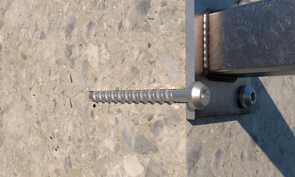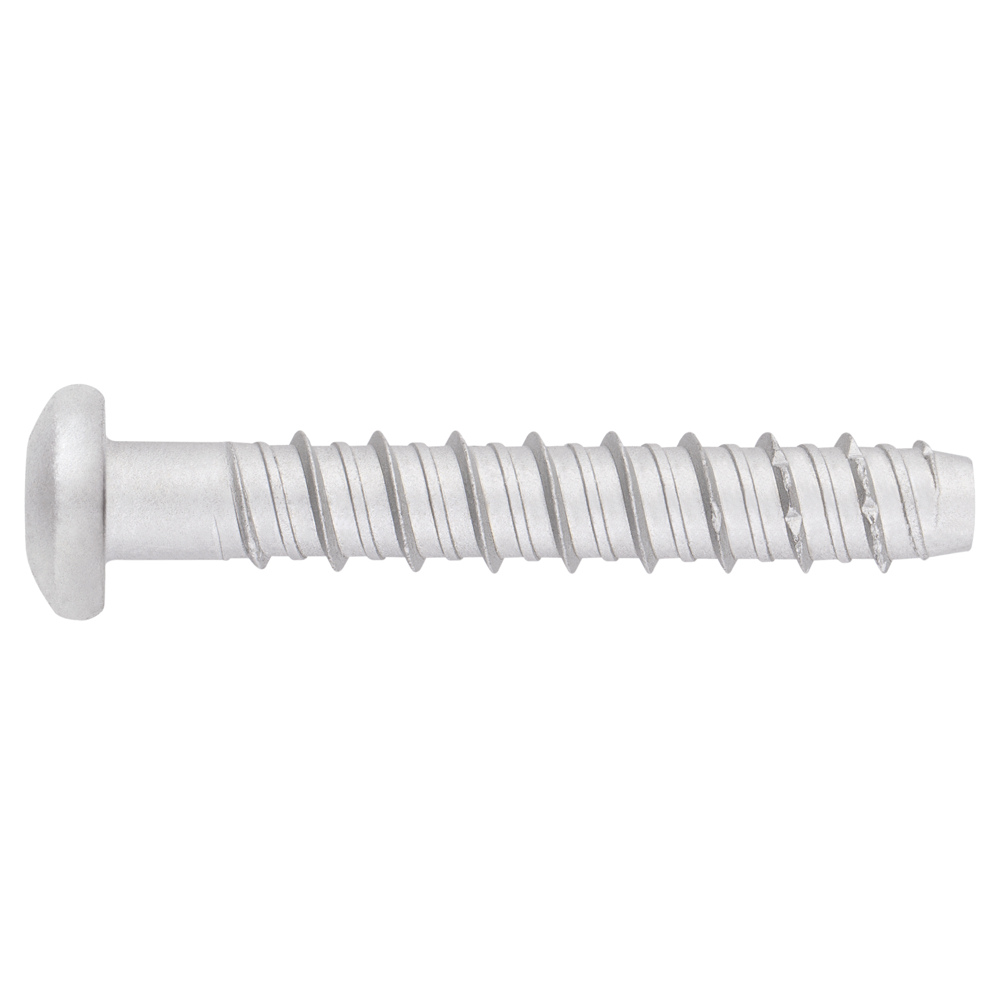 Tornillo de fijación directa con cabeza alomada. Se puede utilizar para fijar elementos de cargas altas en hormigón fisurado y no fisurado. Anclaje desmontable y reutilizable. Homologado ETE Opt.1. Fabricado en acero con recubrimiento ATLANTIS C3-H.