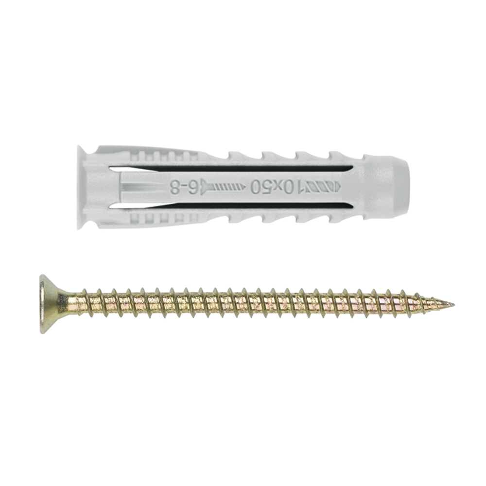 Taco de nylon anudable de 4 segmentos para todo tipo de materiales. Taco + tirafondo