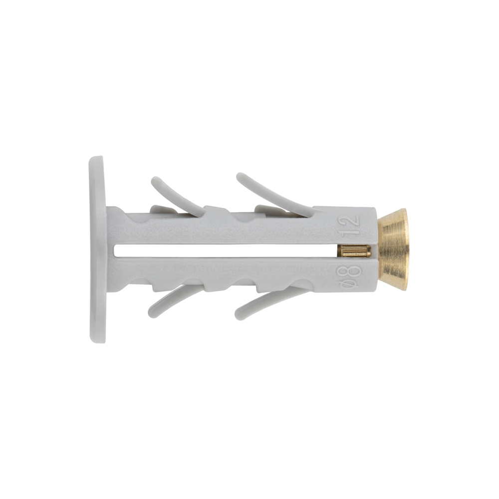 Taco de nylon multimaterial, diseñado para fijar elementos ligeros sobre materiales macizos y huecos. Permite anclar objetos como lámparas o carteles de un modo rápido y sencillo. Incorpora un collarín que evita que el taco penetre en el agujero durante la instalación. Cuenta con aletas que impiden que el taco se mueva durante el apriete.