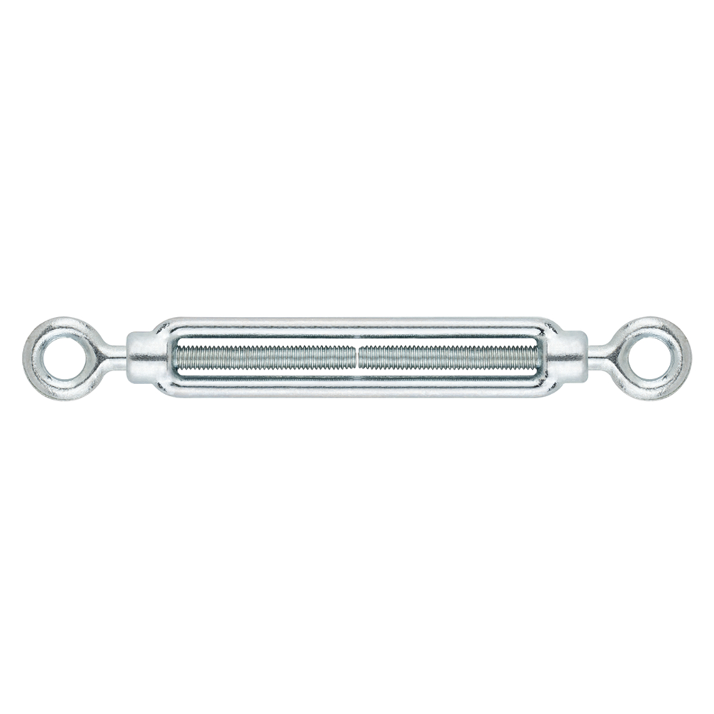 Tensor con anillas en los extremos, acorde a la norma DIN 1480. Se puede emplear para tensar cables de acero, cuerdas o cadenas de un modo sencillo y efectivo. Su doble anilla permite una mayor resistencia a la tracción, reforzando la seguridad de los montajes. Está fabricado en acero zincado.